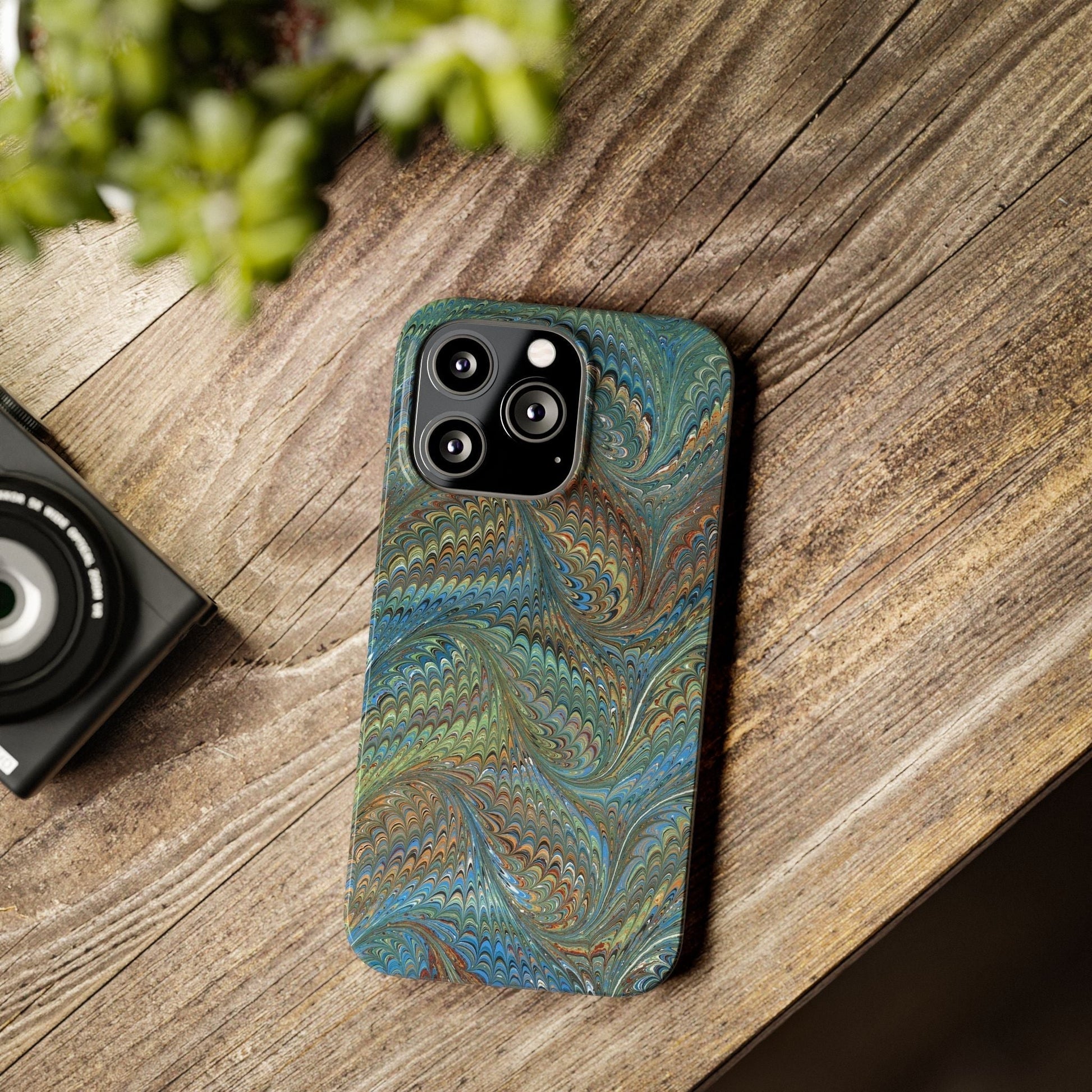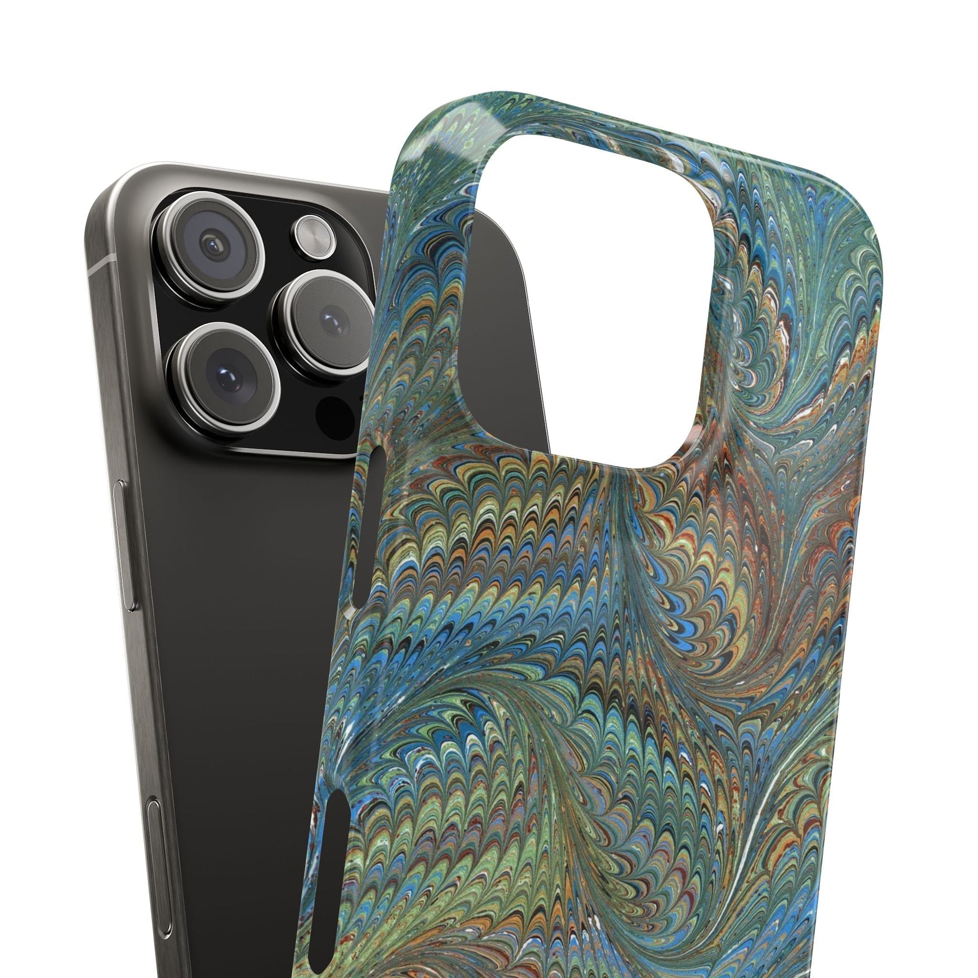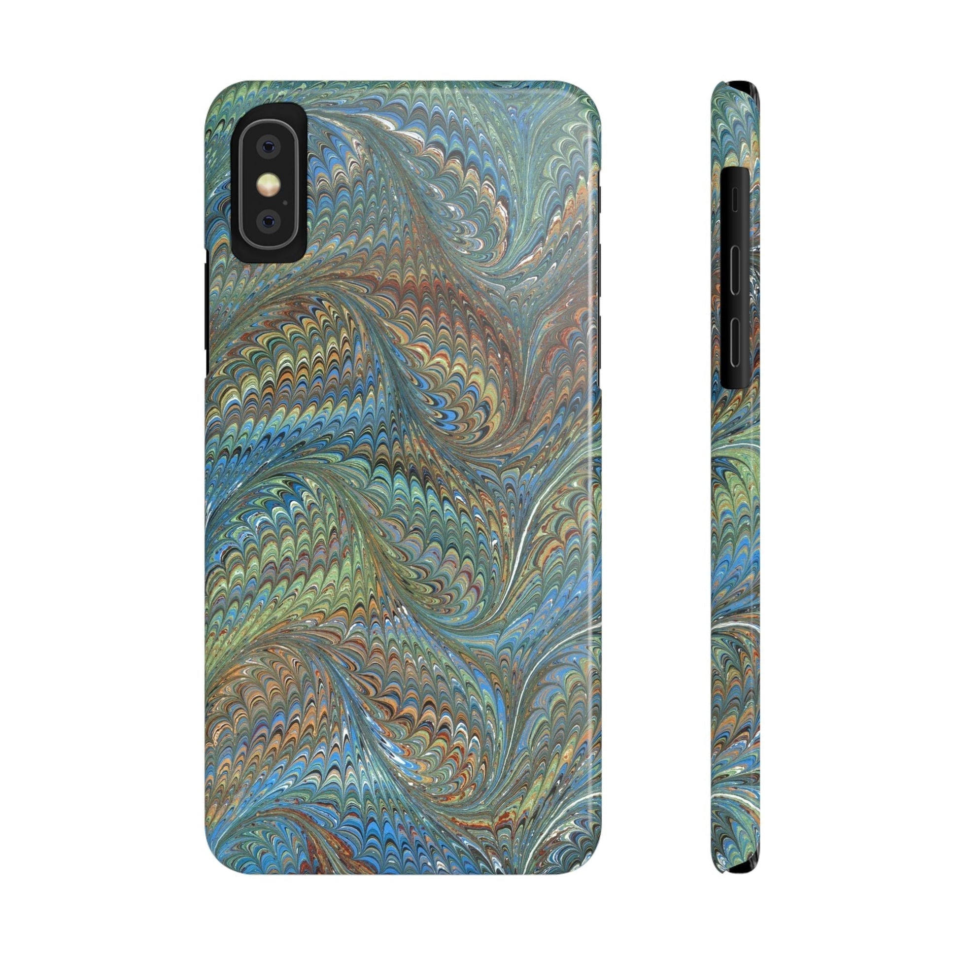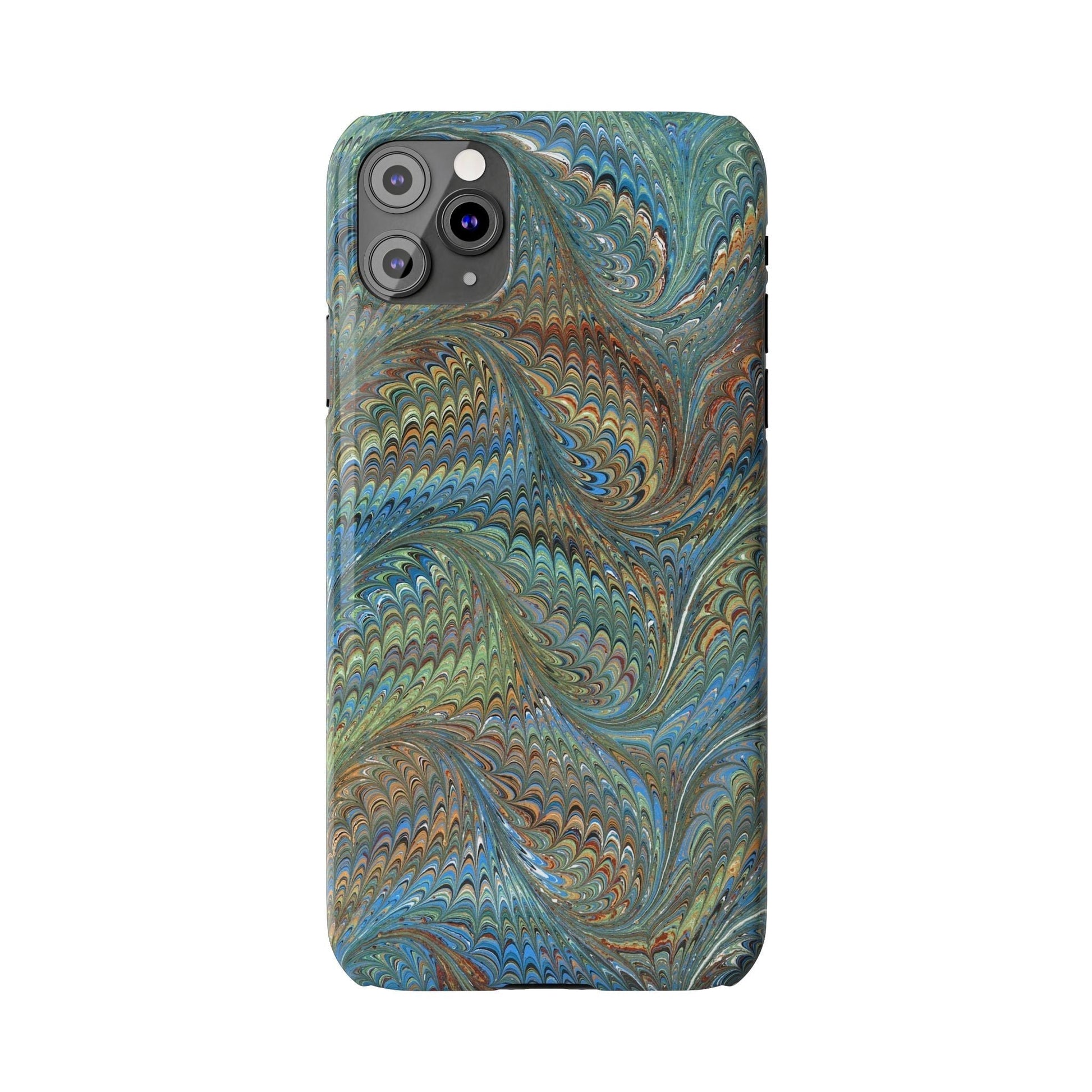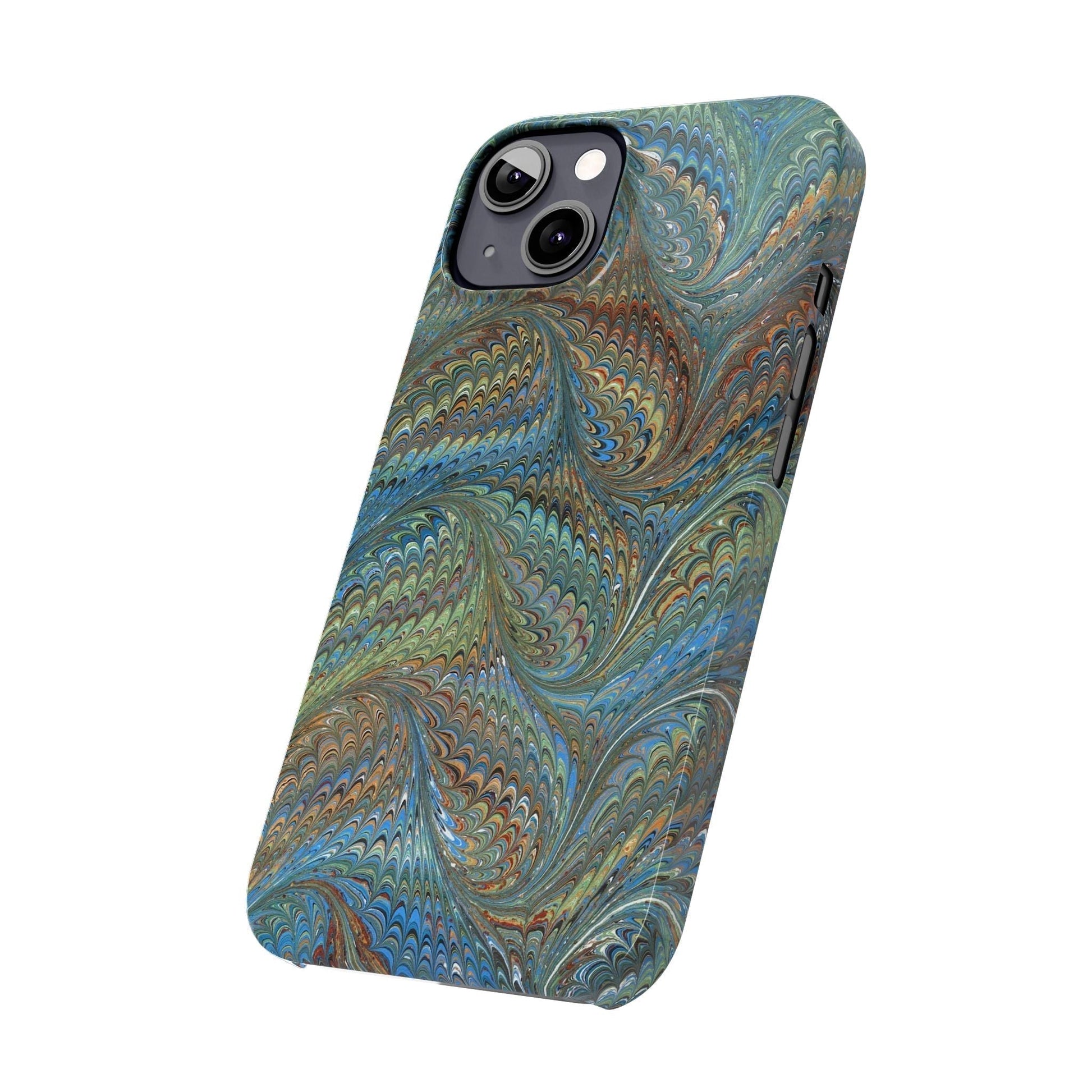 Blue and Green Italian Marbled Swirl Design, Italy Feather Phone Case, Multi-Color, Slim Phone Cases, Case-Mate IPHONE16 and all sizes.