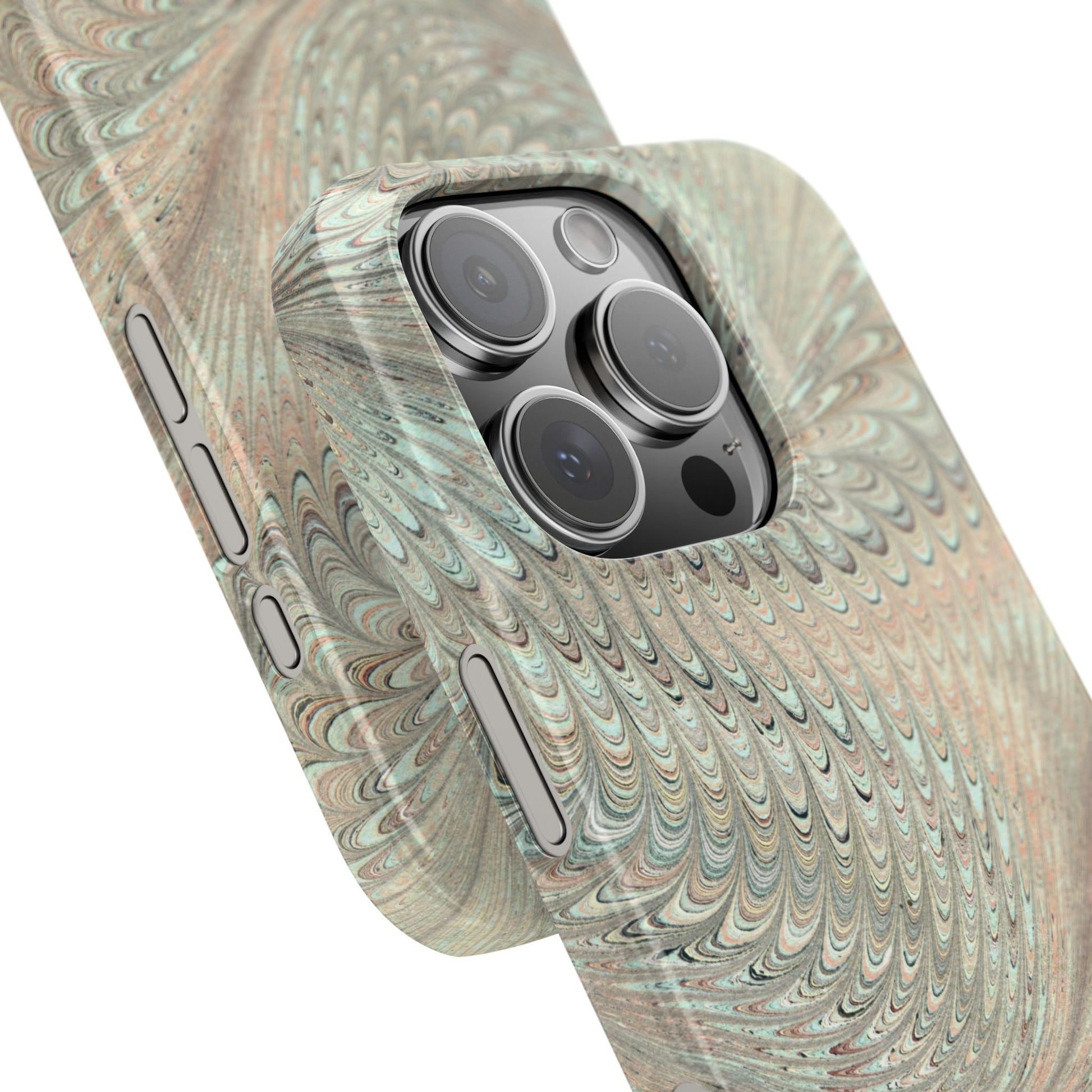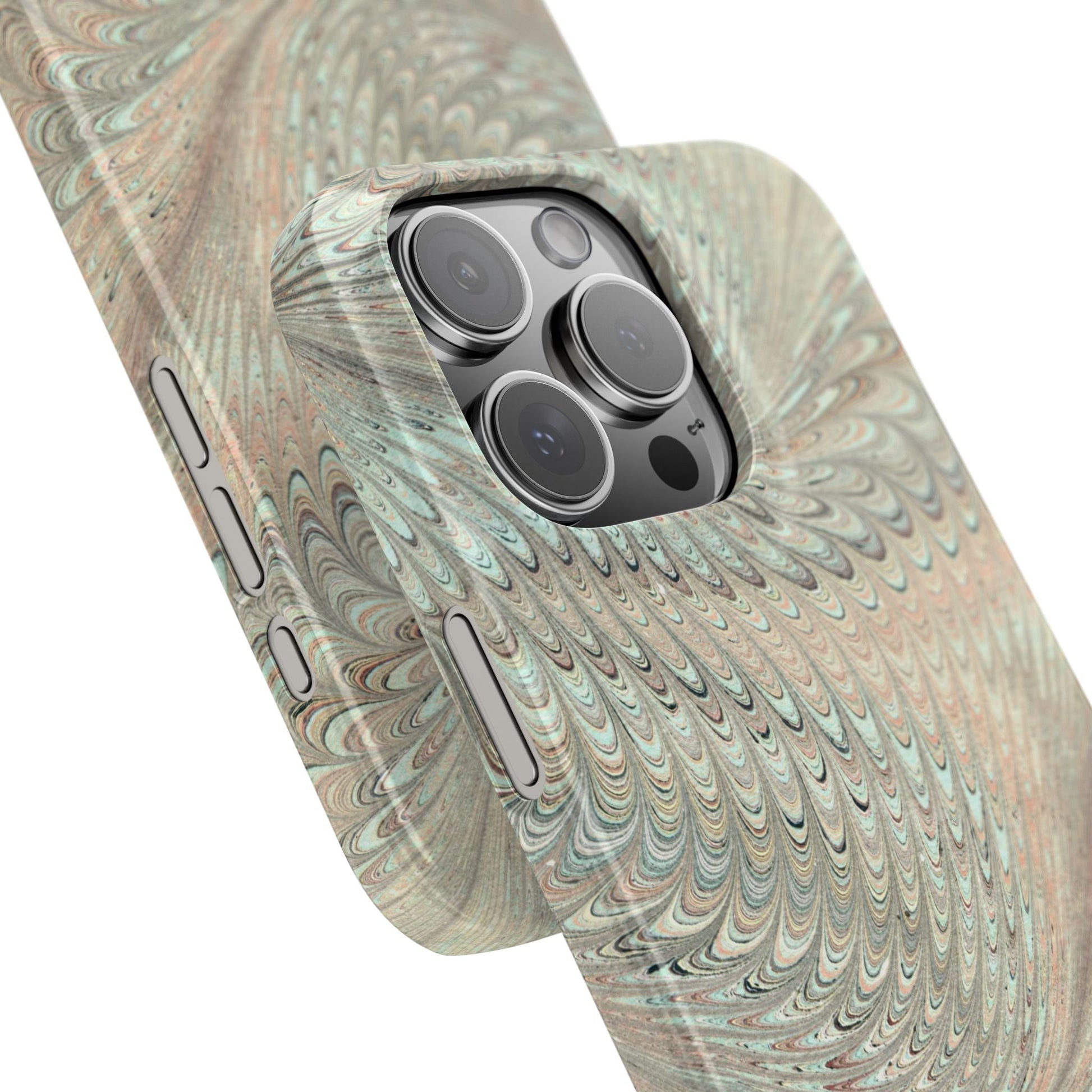 Marbled VIntage Design, Italian Feather Phone Case, Green Hues, Mint, Beige, Neutrals, Slim Phone Cases, IPHONE16 and all sizes